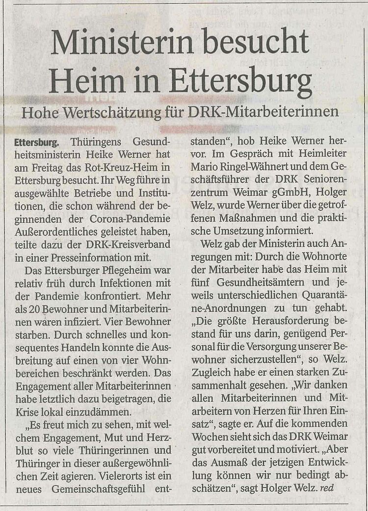 Corona im Pflegeheim Ettersburg unter Kontrolle