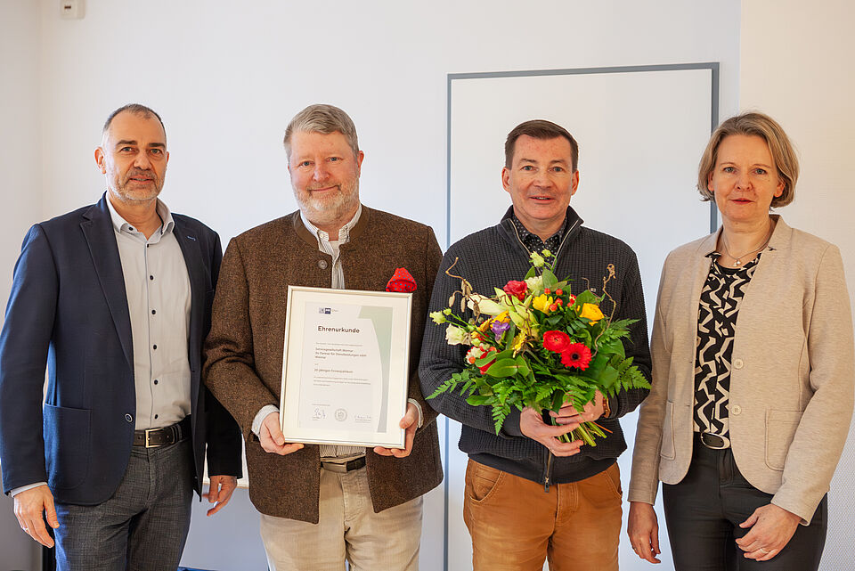 Das 20-jährige Bestehen der Servicegesellschaft Weimar mbH (SGW) wurde von der Industrie- und Handelskammer Erfurt gewürdigt. Zum Jubiläumstermin übergab Jana Burkhardt vom IHK-Regionalbüro eine Ehrenurkunde an den Geschäftsführer Holger Welz. Als besondere Anerkennung nahm auch Weimars Oberbürgermeister Peter Kleine an dem Termin teil.