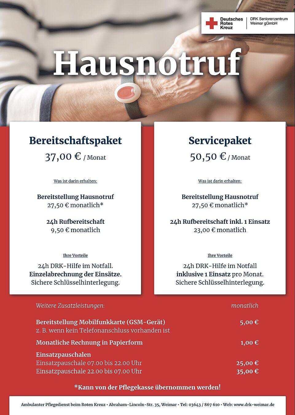 Die Preise finden Sie unten in der Kostenübersicht für Hausnotrufsystemoder in unseren Vertragsunterlagen, welche ebenfalls auf dieser Seite stehen.
