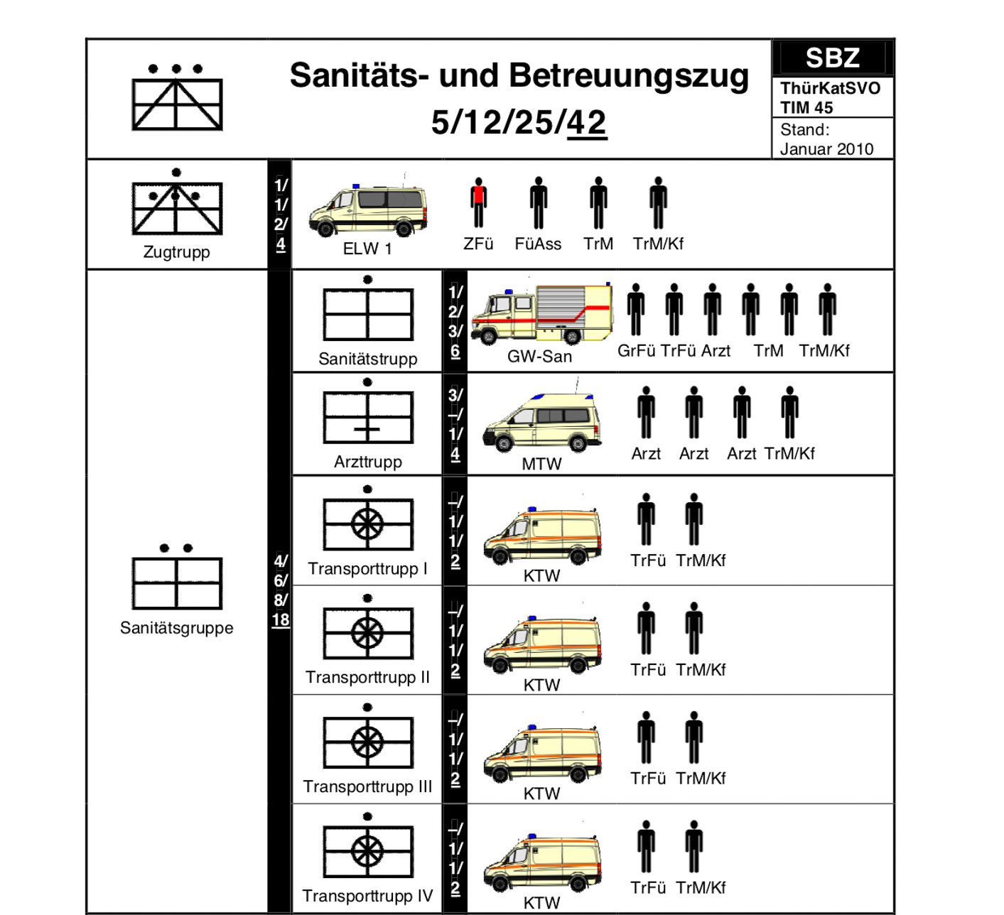Zur Bewältigung von komplexen katastrophenmedizinischen Schadenslagen ist die MTF in fünf Teileinheiten untergliedert, die einen modularen Aufbau erlauben: